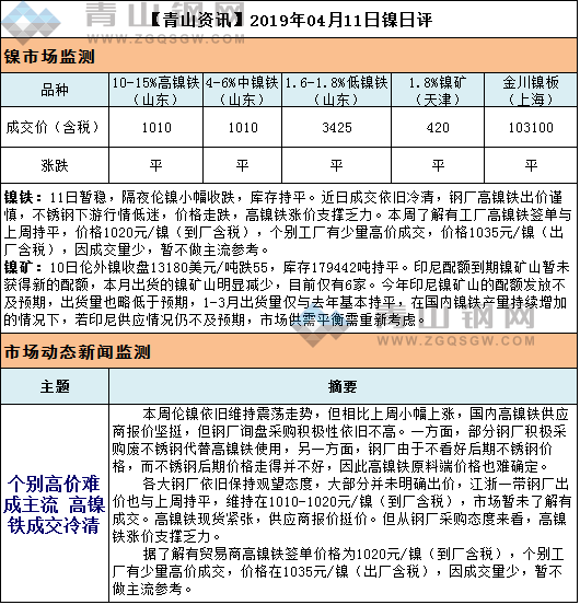 厂家【青山资讯】04月11日镍日评